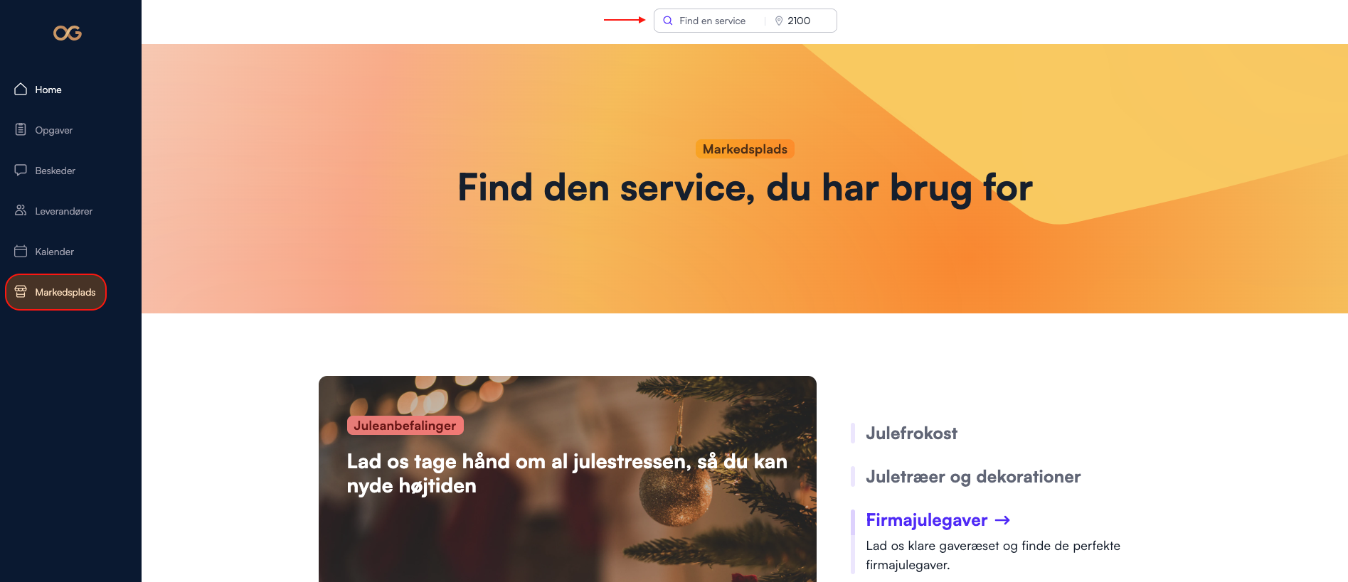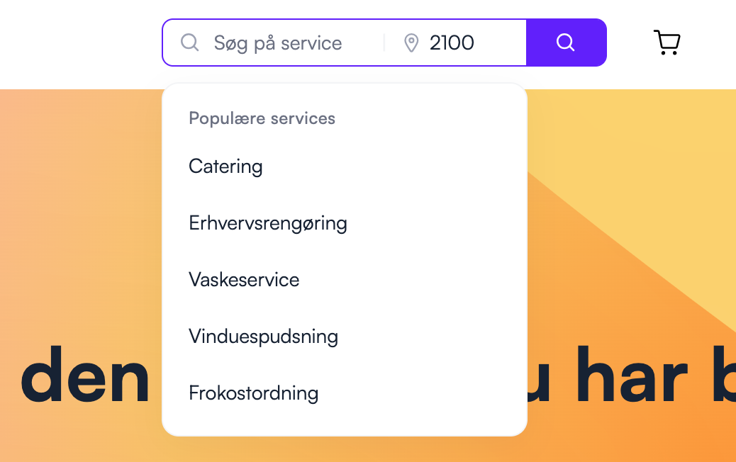 - Søg på den service, du ønsker et tilbud på, og indtast dit postnummer.