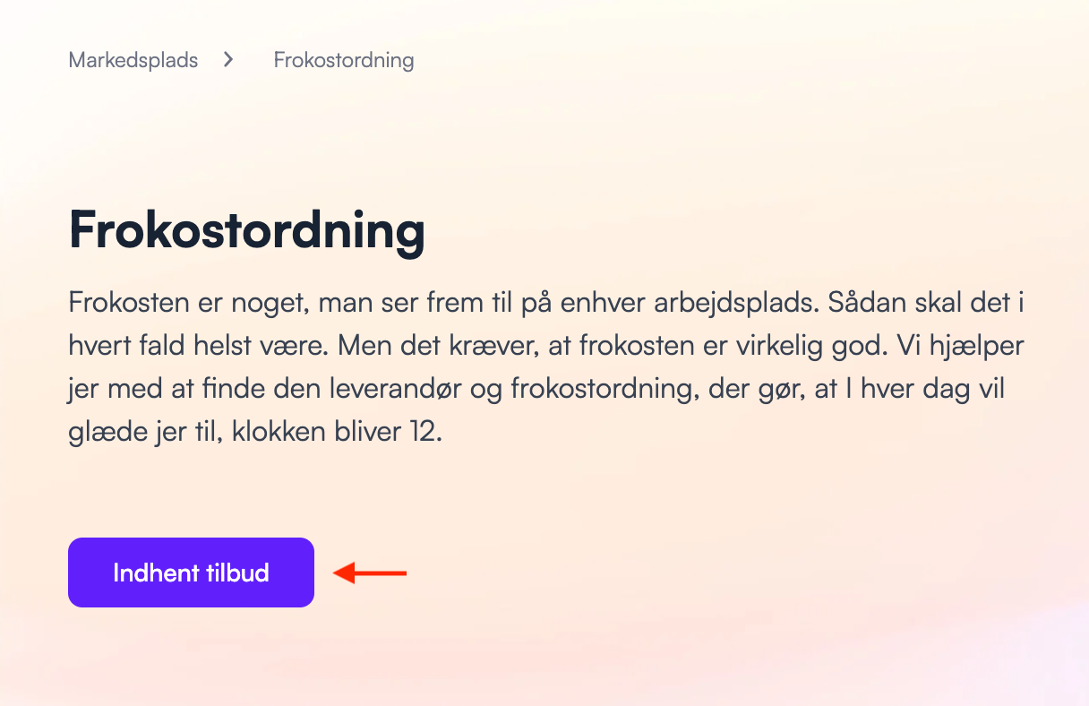 - Klik på Indhent tilbud, hvorefter du vil blive sendt videre i forespørgsels processen. Husk, at beskrive jeres behov bedst muligt - Jo mere detaljeret, desto bedre et tilbud vil du modtage.