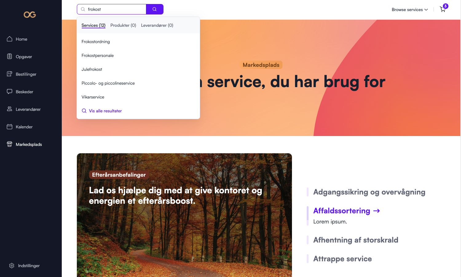 - Klik på "Søg service" i venstre hjørne eller på forsiden inde på Officeguru.dk.
