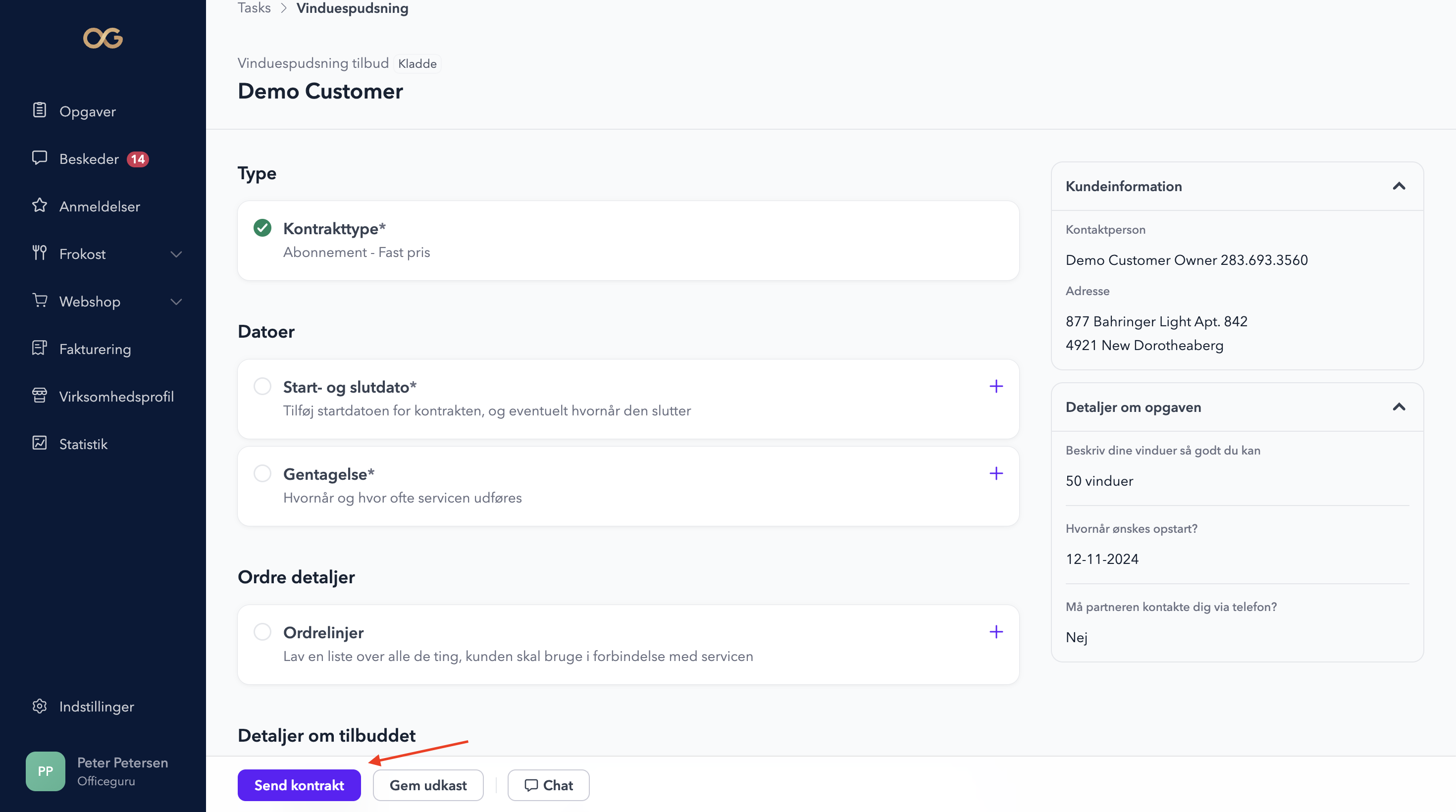 4. Send kontrakten til kunden